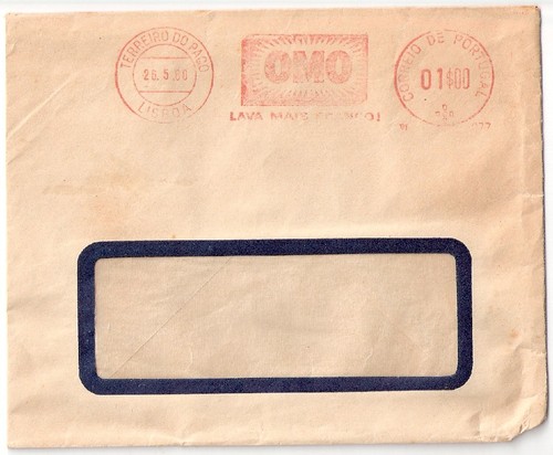 Carta com franquia "Omo lava mais branco" da estação do Terreiro do Paço de 26/05/1960 com porte de 1$00.