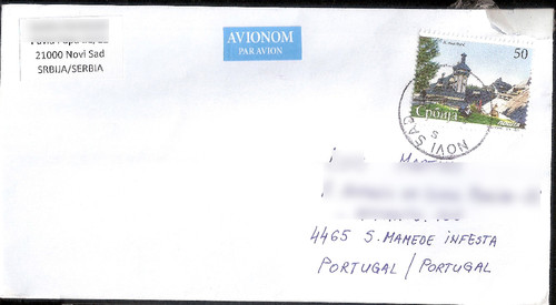 Carta circulada de Novi Sad (2ª maior cidade da Sérvia) para S. Mamede de Infesta, em 2012