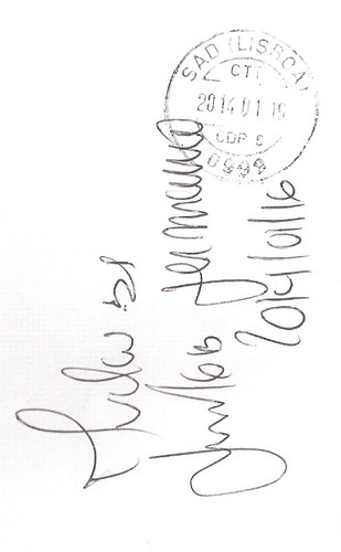 Fragmento de verso de carta devolvida ao remetente com indicação manuscrita "Mudou-se" com a curiosa marca SAD (Lisboa).
